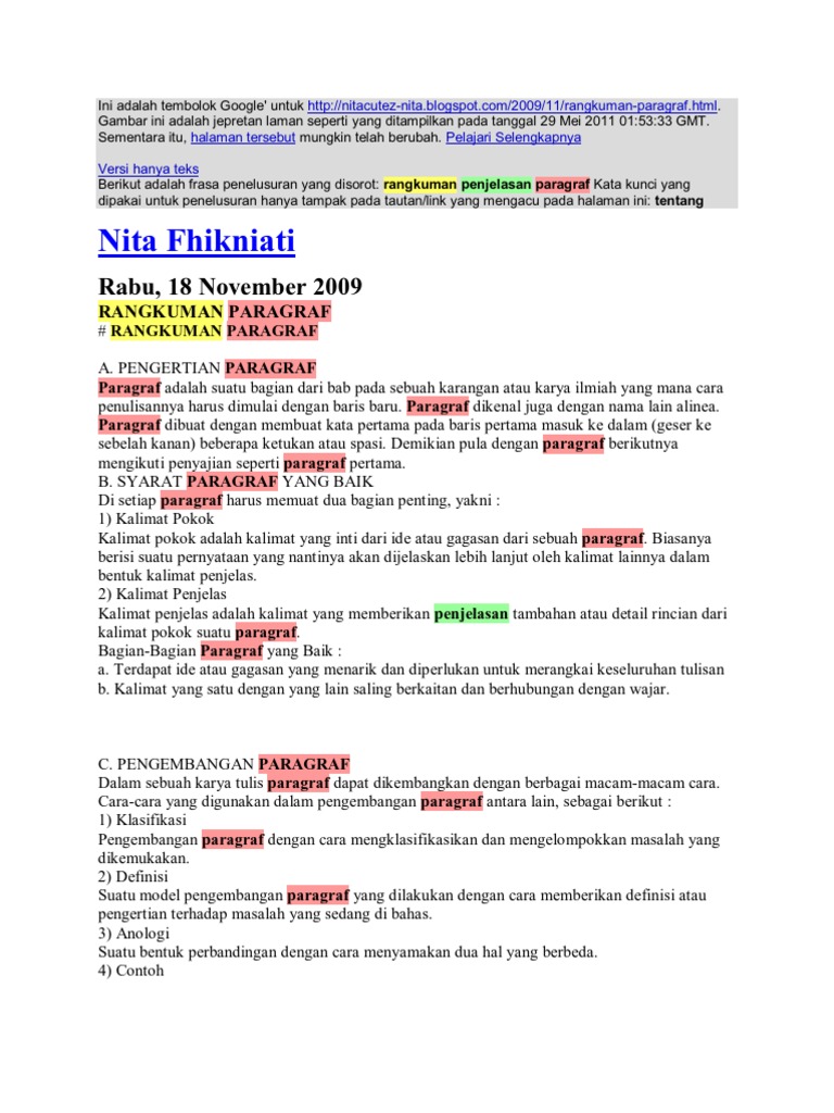 Contoh Kata Kunci Dalam Paragraf