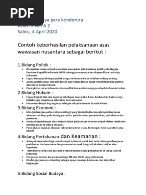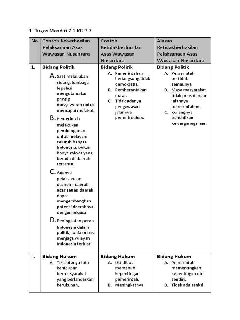 PKN KD 3.7.docx - 1 Tugas Mandiri 7.1 KD 3.7 No Contoh Keberhasilan Pelaksanaan Asas Wawasan Nusantara 1 Bidang Politik A Saat melakukan sidang lembaga | Course Hero