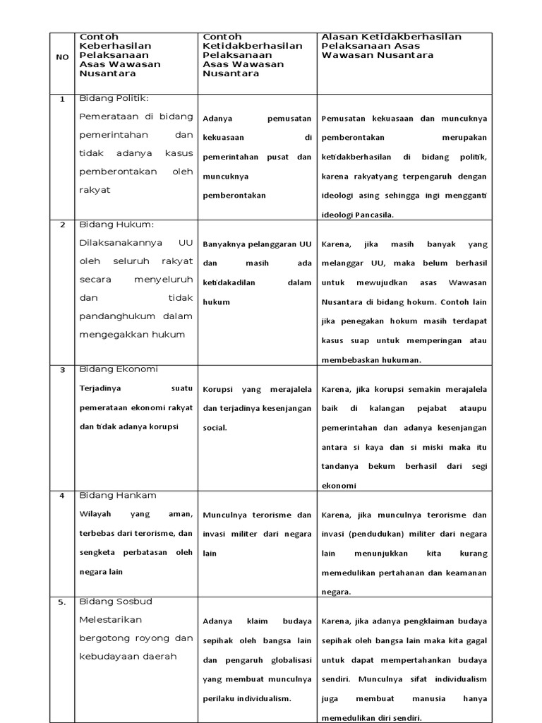 Contoh Keberhasilan Pelaksanaan Asas Wawasan Nusantara Dalam Bentuk Tabel - Seputar Bentuk