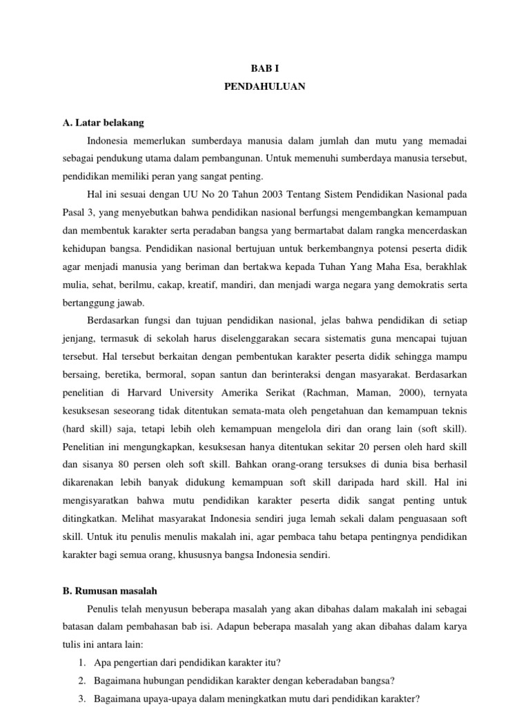 Contoh Makalah Pendidikan Karakter Lengkap