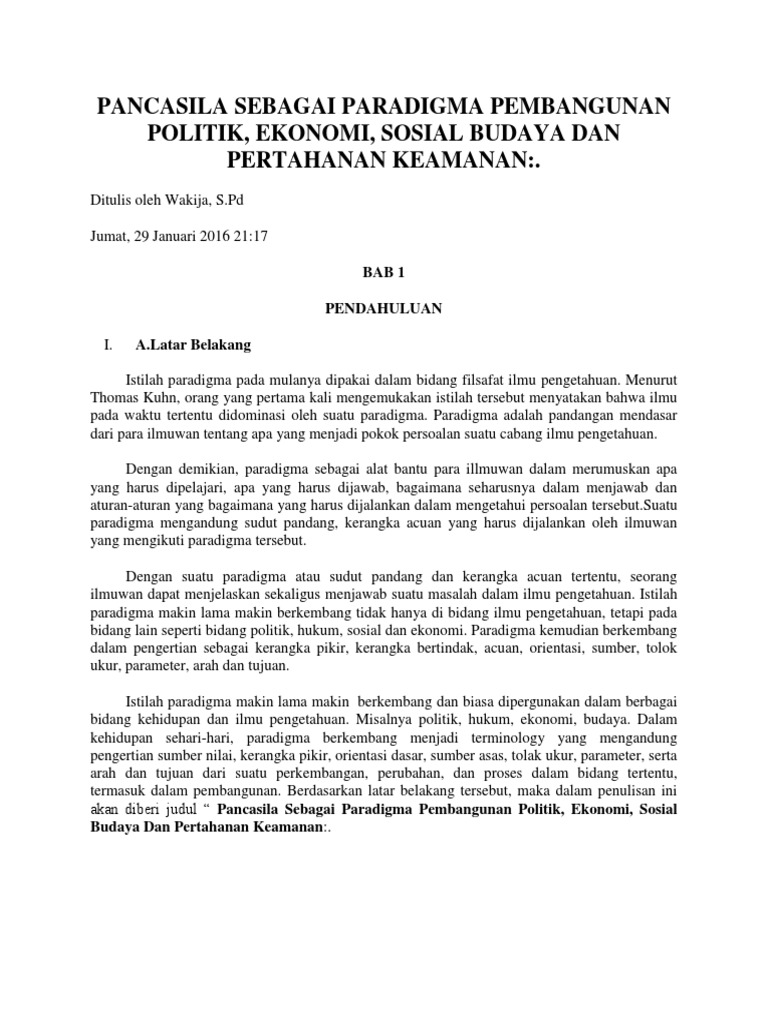 contoh soal dan contoh pidato lengkap : Contoh Pancasila Sebagai Paradigma Pembangunan Politik, Ekonomi, Sosial, Budaya, Poleksosbudhankam