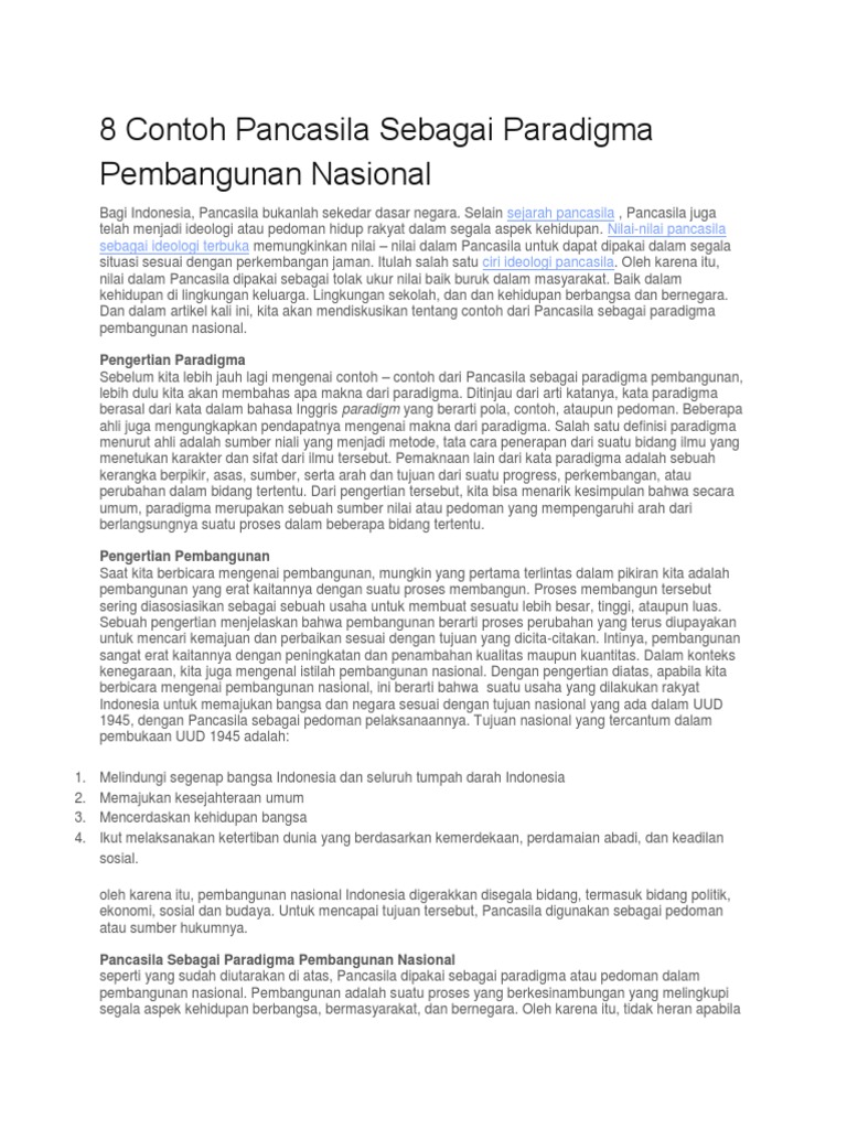berikan masing - masing satu contoh : 1. Pancasila sebagai paradigma pembangunan dan Pengembangan - Brainly.co.id