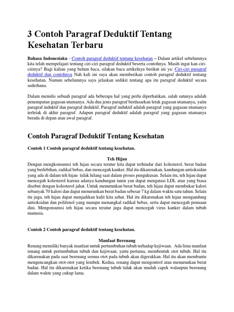 20+ Contoh Paragraf Deduktif Kesehatan