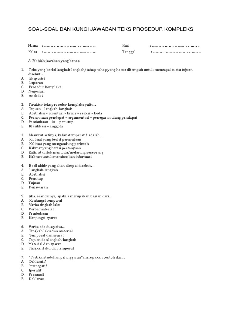 Contoh Soal Teks Prosedur Smk - Cute766