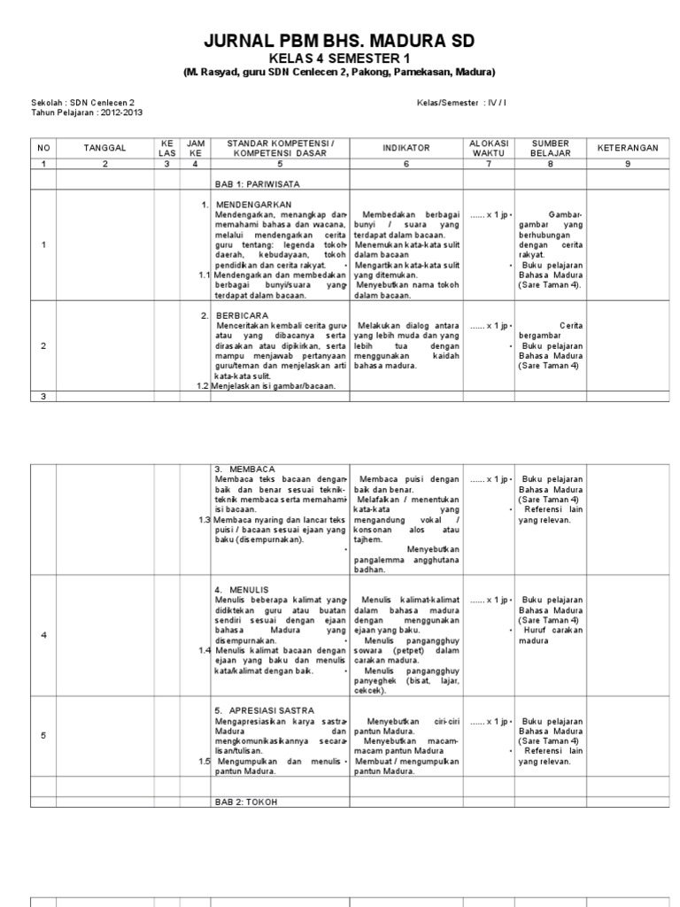 Silabus bahasa madura semester 1 - [DOCX Document]