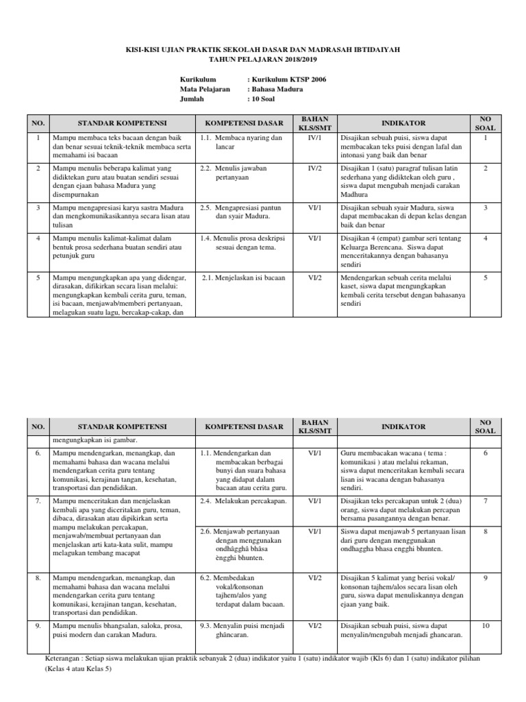 Kisi-kisi Us Praktik Bahasa Madura Ktsp 10 Soal