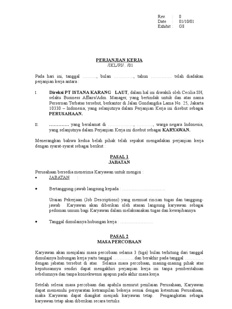 Contoh Surat Perjanjian Kontrak Kerja Karyawan Swasta Doc - Bagikan Contoh