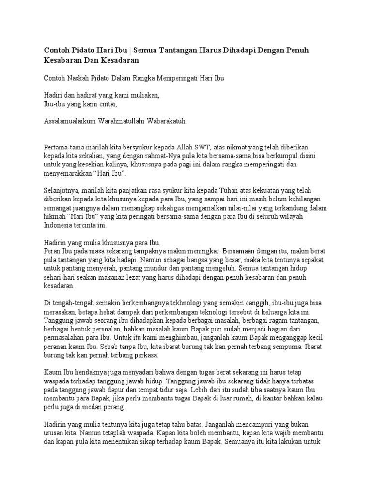 DOC) Contoh Naskah Pidato Memperingati Hari Ibu | Wahyu Widodo …