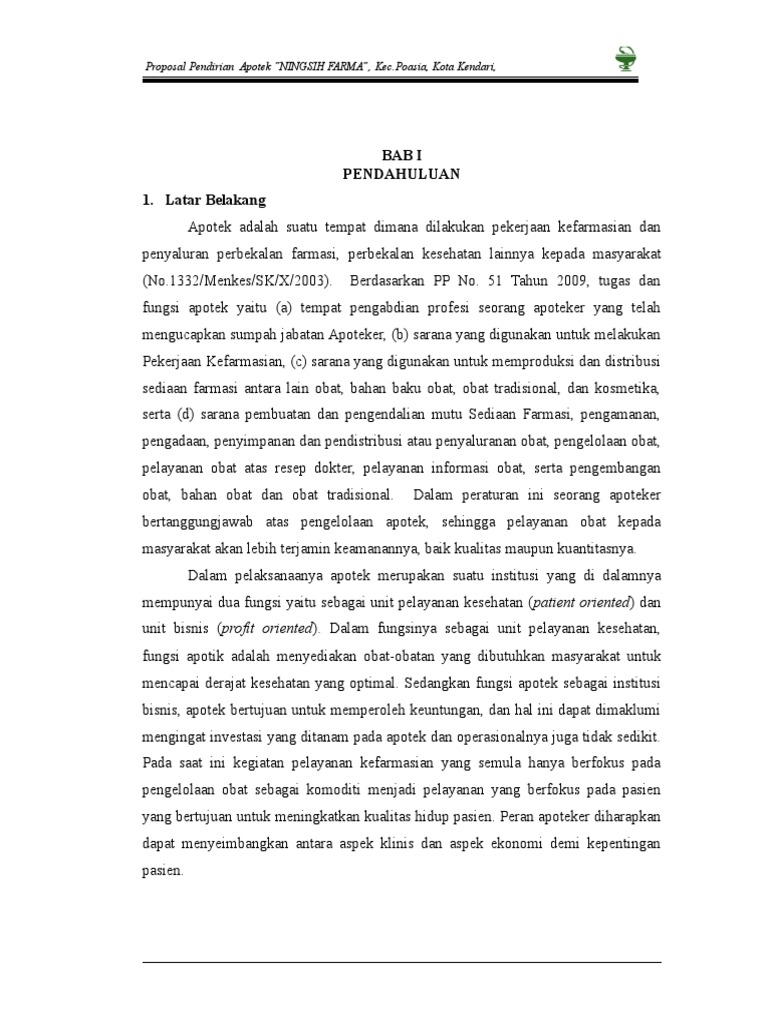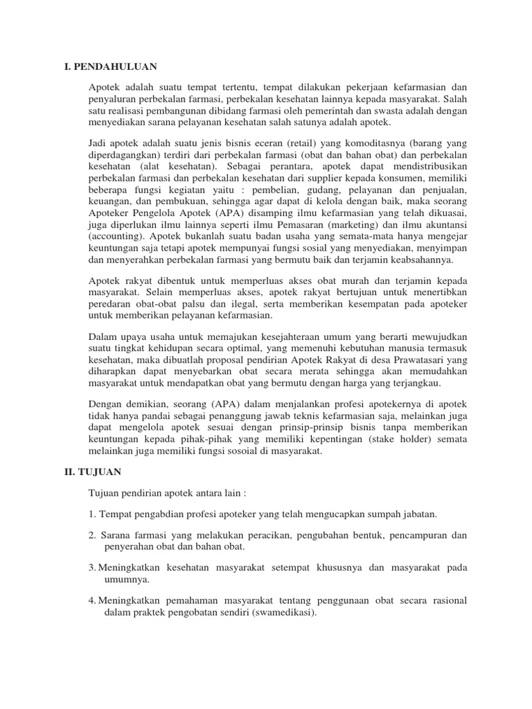 Proposal Studi Kelayakan Pendirian Apotek - PDF Free Download