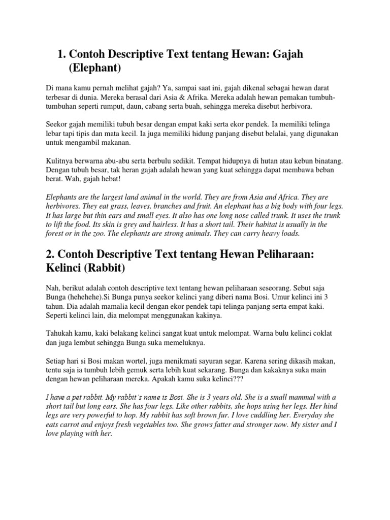 Contoh Descriptive Text Tentang Hewan Dalam Bahasa Inggris Temukan Contoh - Cute766