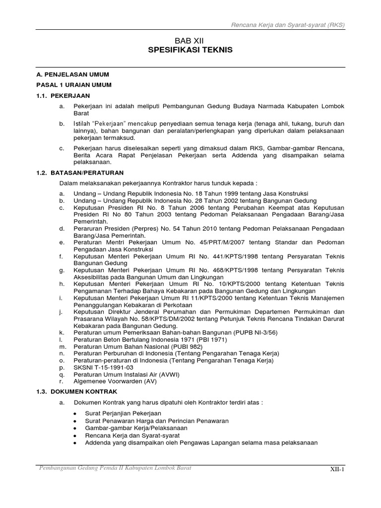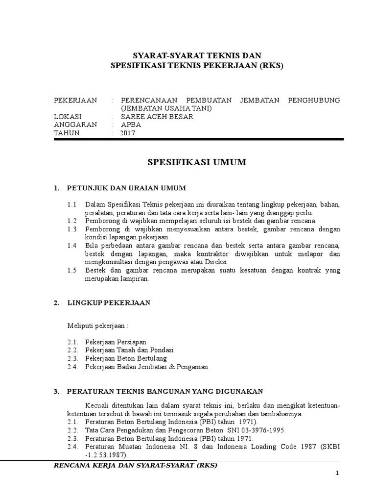 DOC) RENCANA KERJA DAN SYARAT (RKS) PROYEK KONSTRUKSI | Fadhiel Shaldy - Academia.edu