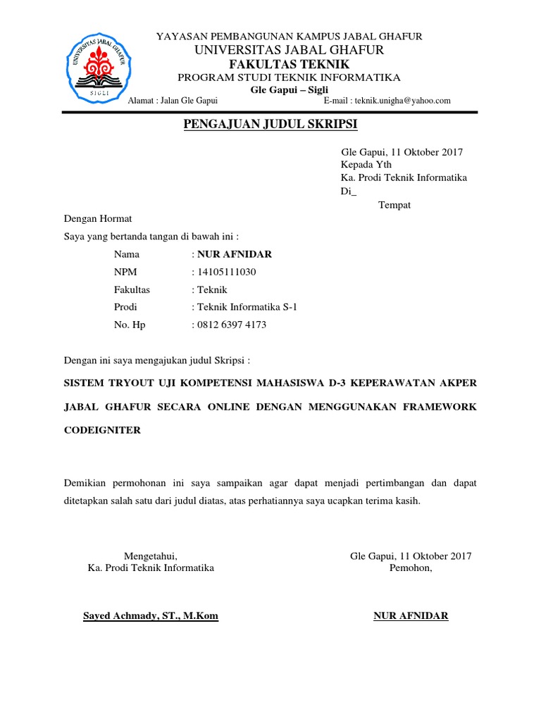PENGAJUAN JUDUL SKRIPSI teknik unigha