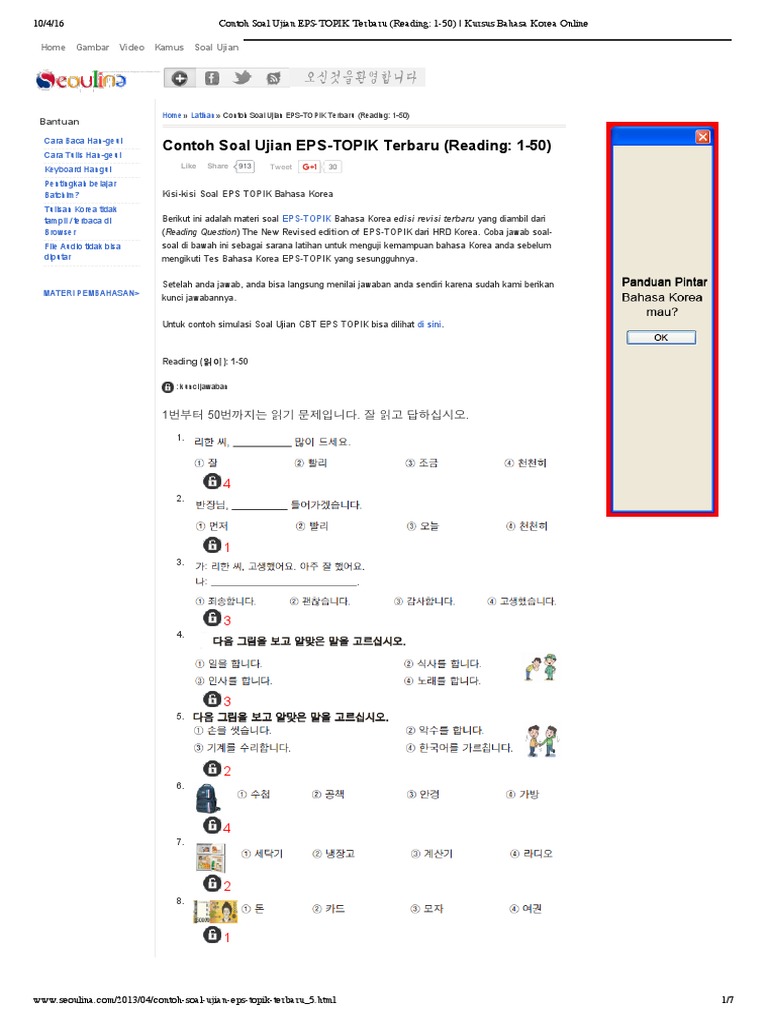 π Soal Ujian EPS TOPIK 2013 | SEOULINA.COM