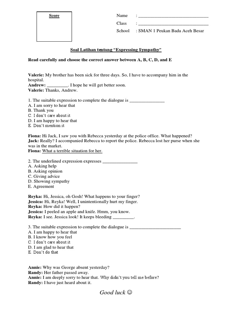 Soal Latihan Tentang Expressing Sympathy
