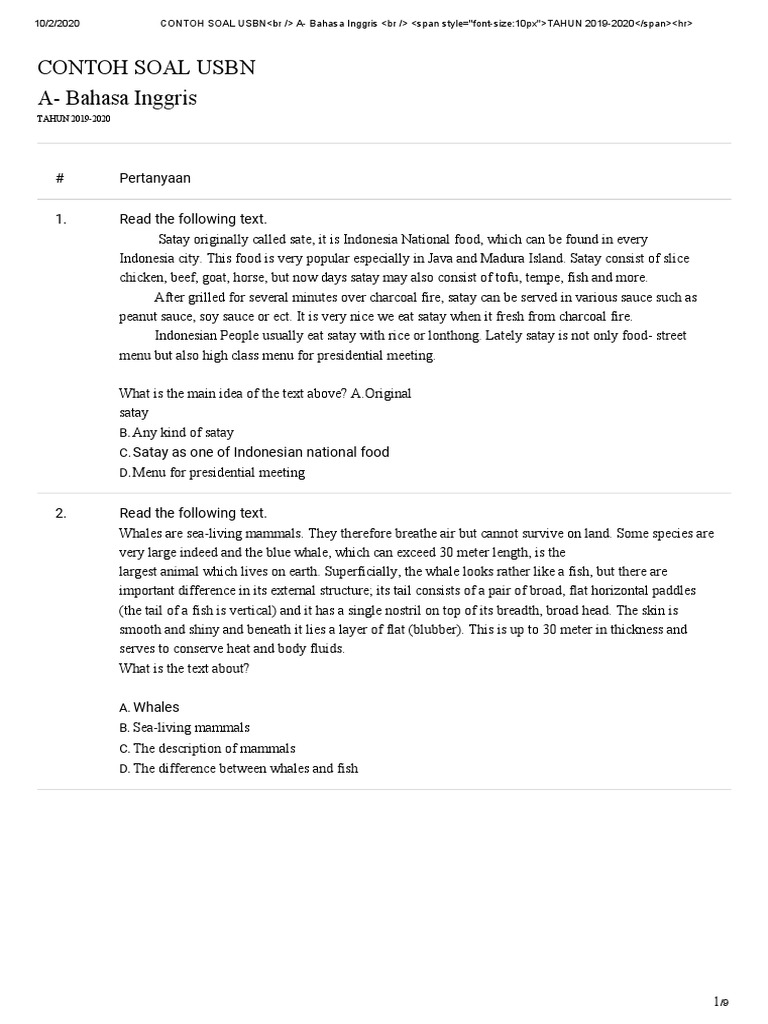 Soal Bahasa Inggris Kelas 10 - phirenp