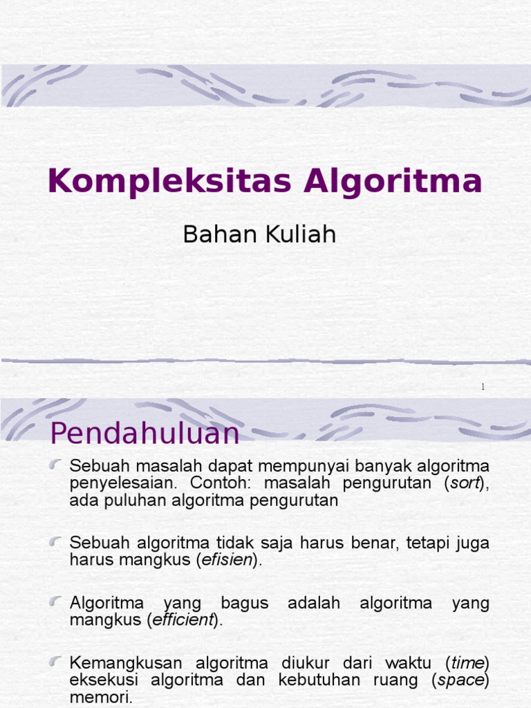 Kompleksitas Algoritma(MG 1B).pptx - Kompleksitas Algoritma Mengukur efisiensi sebuah Algoritma Pendahuluan \u2022 Sebuah masalah dapat memiliki beberapa | Course Hero