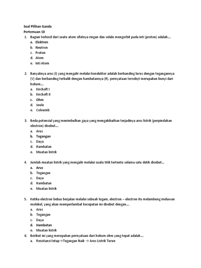 Soal Pilihan Ganda Hukum Ohm - Guru Paud