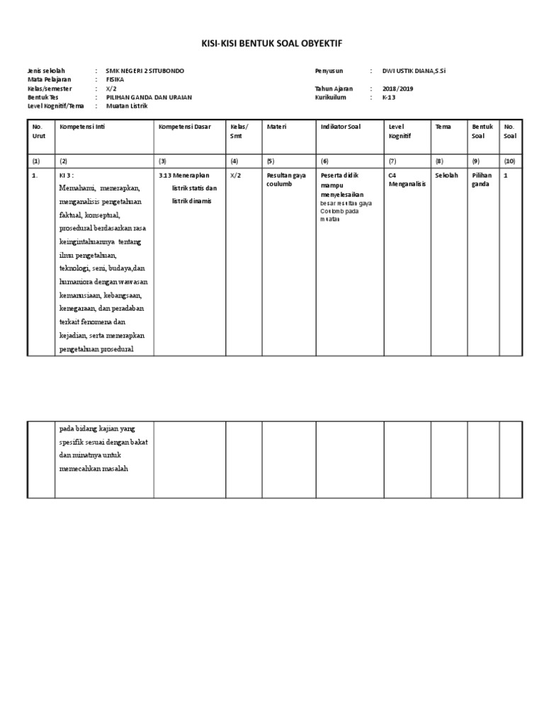 DOC) KIS-KISI SOAL HIGH ORDER THINKING LISTRIK DINAMIS SMP KELAS IX SEMESTER I | Nur Lailatin Nisfah - Academia.edu