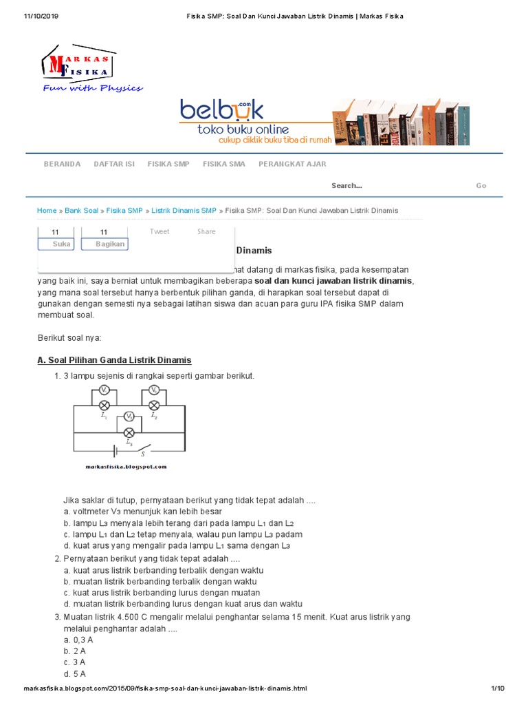 Fisika SMP_ Soal Dan Kunci Jawaban Listrik Dinamis _ Markas Fisika