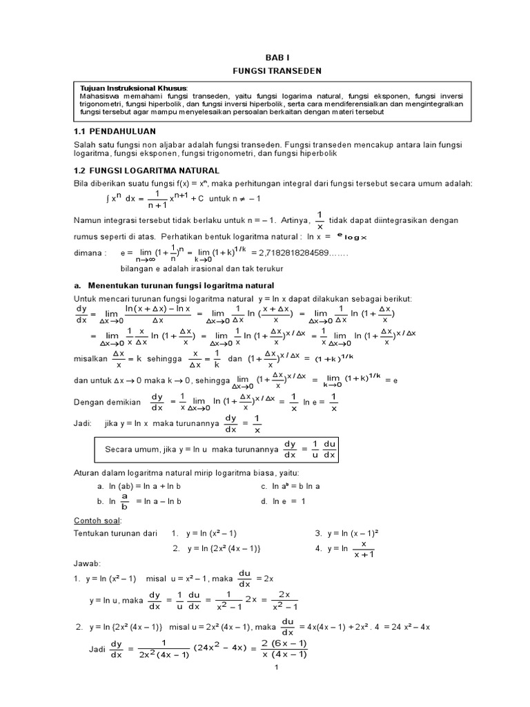 Bab I Fungsi Transeden: Tujuan Instruksional Khusus