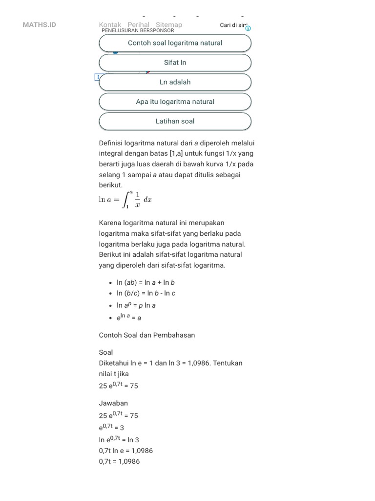 Sifat Yang Dimiliki Oleh Ln Atau Logaritma Natural Ini Penting …