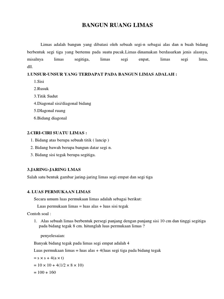 √ Limas (Sifat, Jaring-jaring, Luas Permukaan, Volume)