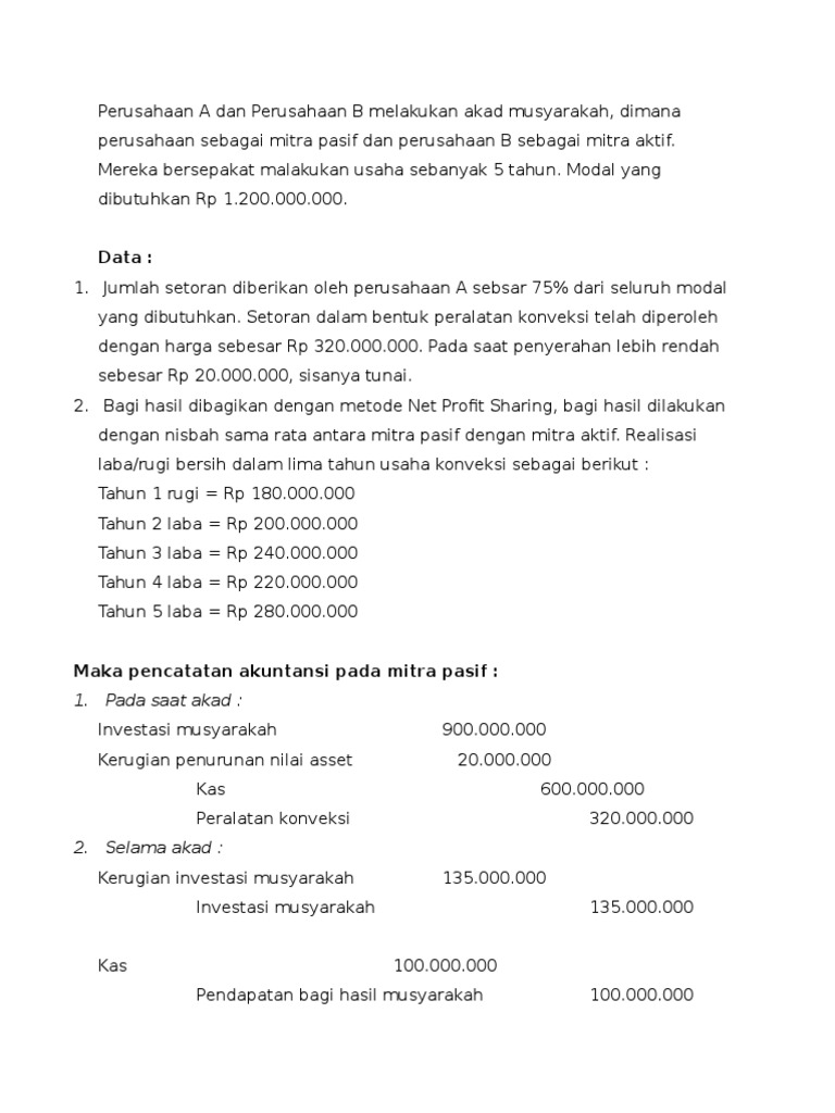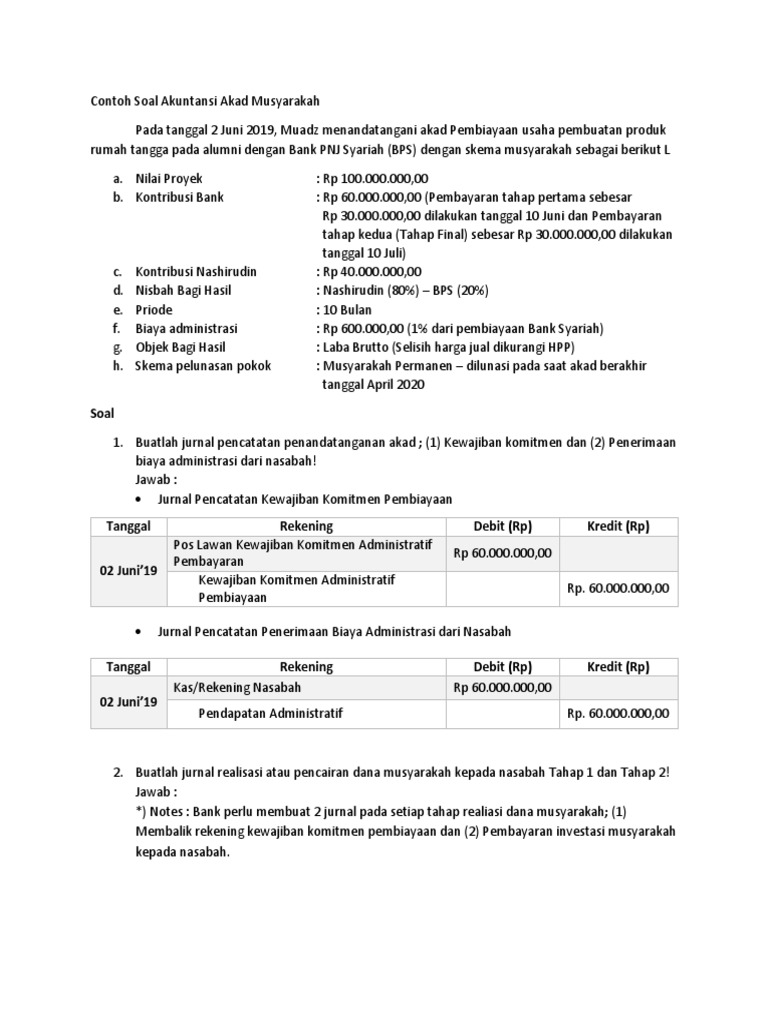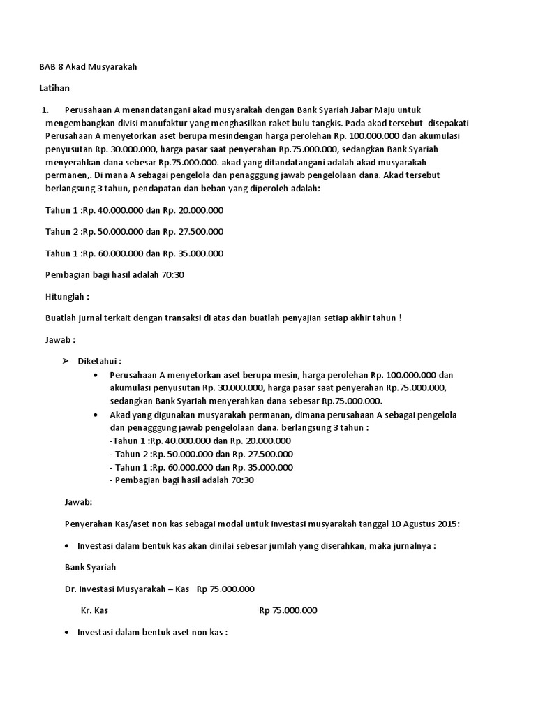 Contoh Soal Dan Jawaban Soal Akuntansi Syariah Musyarakah - Bali …