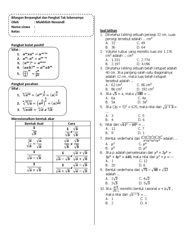 5. Latihan Soal Matematika Pangkat Tak Sebenarnya Kelas 9 SMP - PDF Free Download