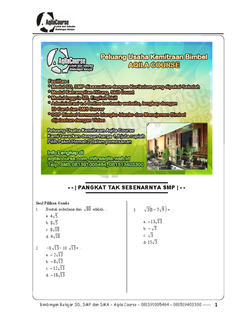 Contoh Latihan Soal: Soal Matematika Smp Kelas 9 Pangkat Tak Sebenarnya