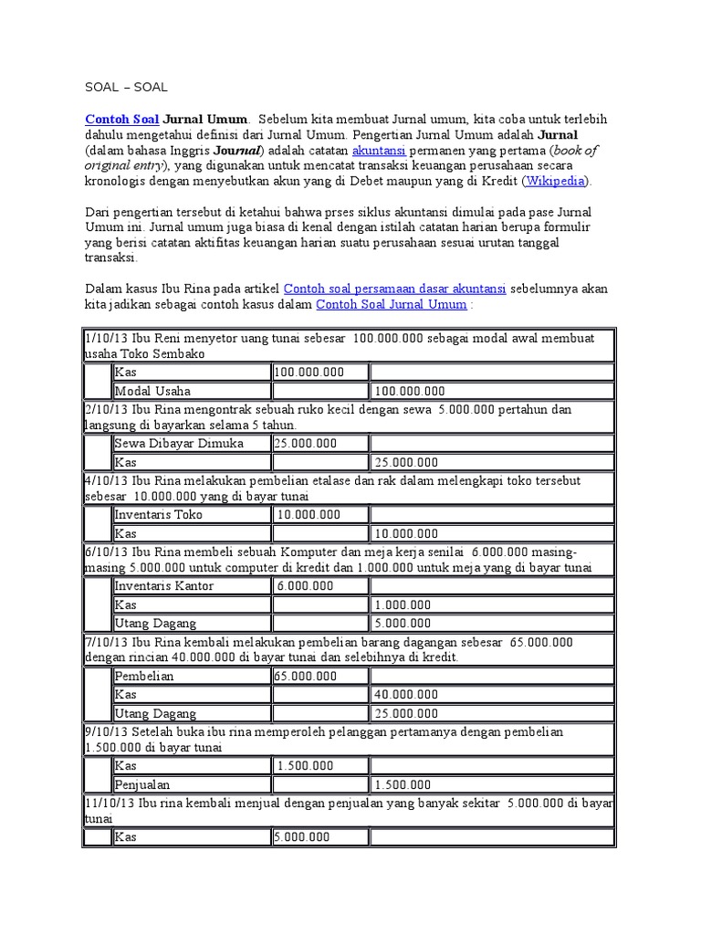 Contoh Soal Latihan Jurnal Umum - Campuranpedia.com