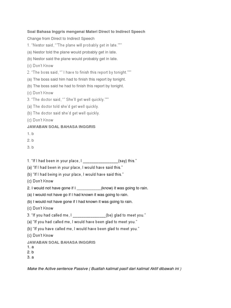 Contoh Soal Direct And Indirect Speech Dan Jawaban - Barisan Contoh