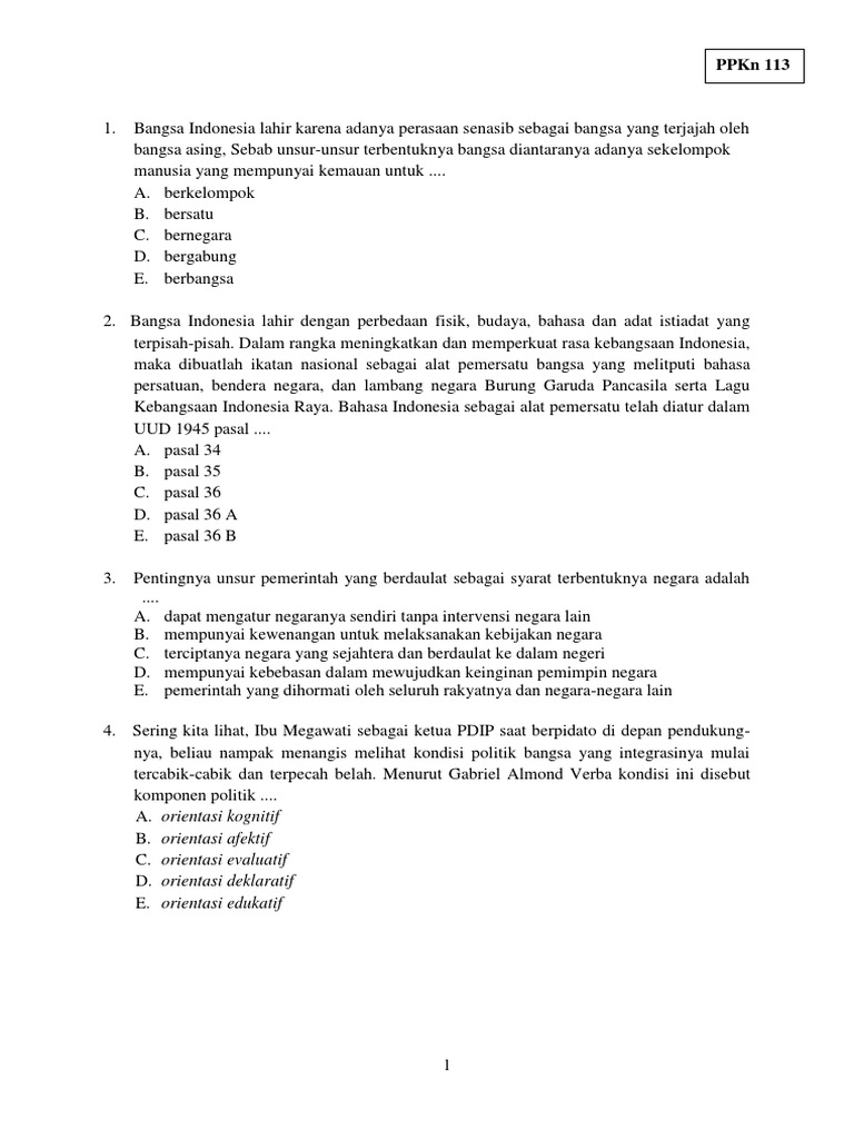 Kunci Jawaban Naskah Soal Utama Ppkn 113 | Link Guru