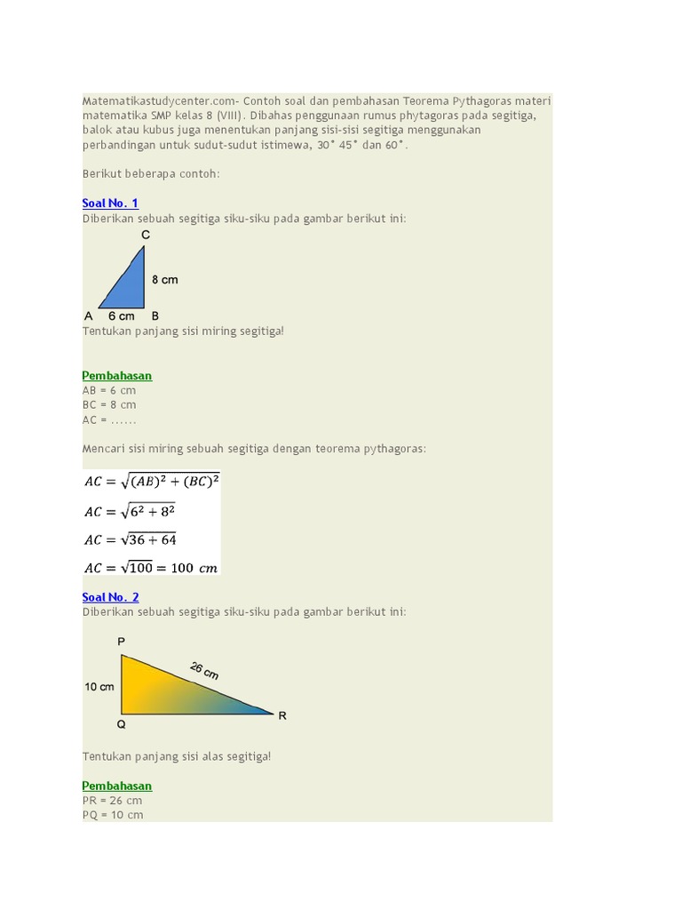 Contoh Soal Teorema Pythagoras Smp Kelas 8 - Dapatkan Contoh
