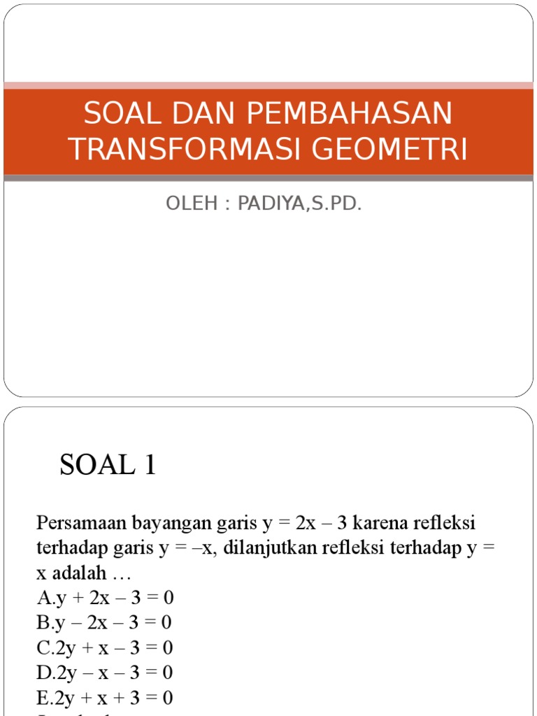 Soal dan Pembahasan - Refleksi Geometri Bidang Datar (Versi Rawuh …