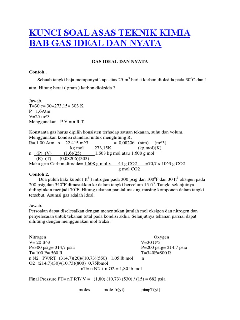 Kunci Soal Asas Teknik Kimia Bab Gas Ideal Dan Nyata