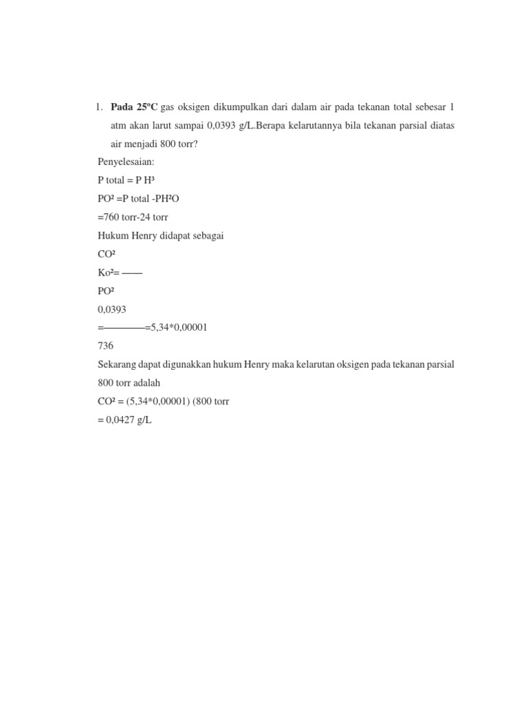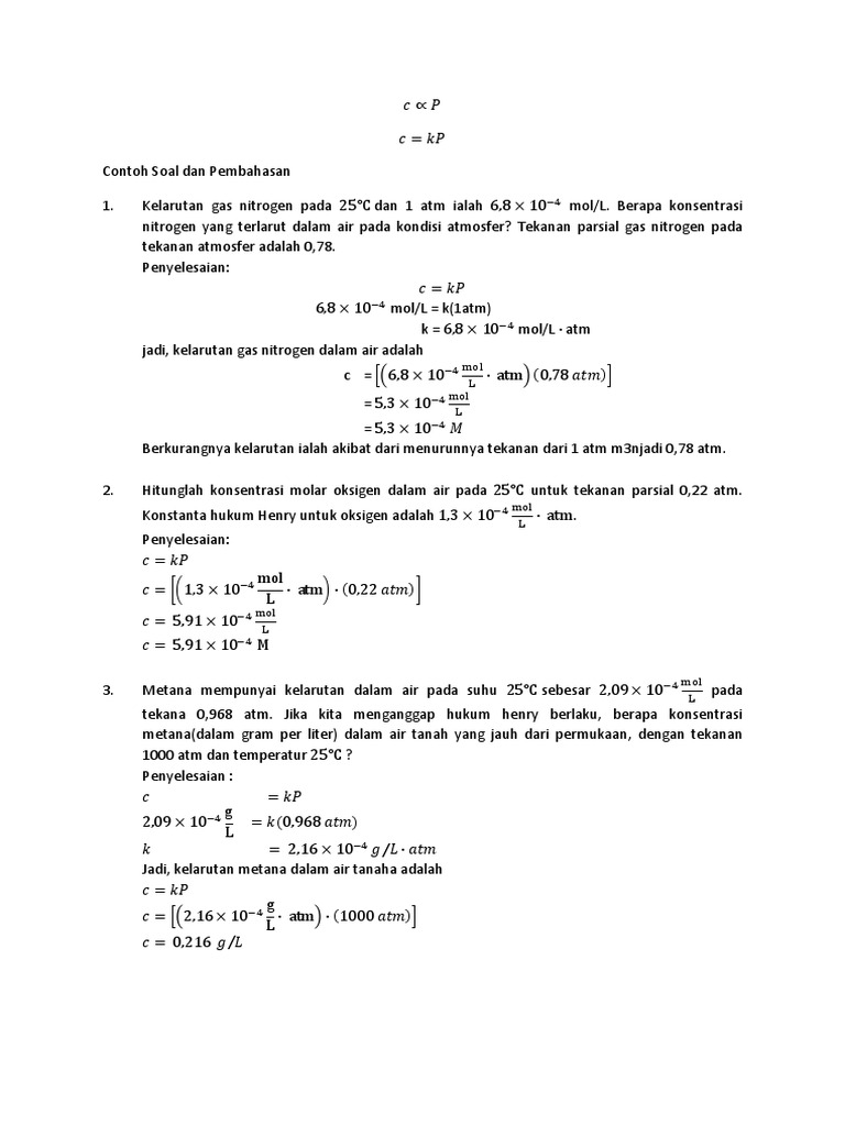 Hukum Henry - Rumus, Nilai Konstanta - Kelarutan Gas dalam Air - Soal