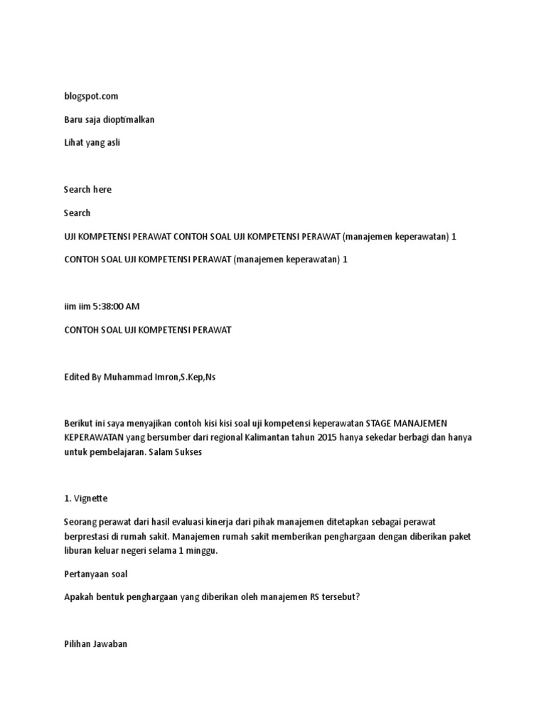Contoh Soal Uji Kompetensi Manajemen Keperawatan - Contoh Soal Terbaru