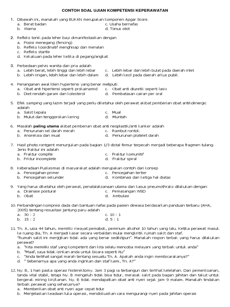 Contoh Soal Uji Kompetensi Keperawatan Beserta Kunci Jawaban Word …
