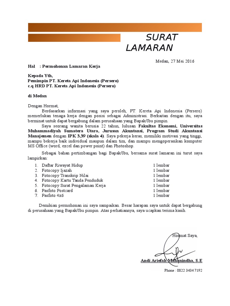 Tebaik Contoh Surat Lamaran Kerja Pt Kai 40 Dalam Menulis Surat Lamaran Unik di post Contoh Surat Lamaran Kerja Pt Kai - Gawe CV
