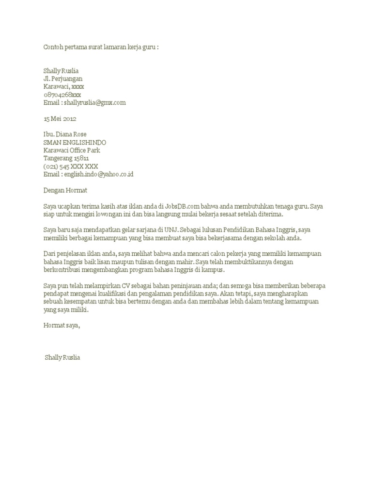 Contoh Surat Lamaran Kerja Guru Bahasa Inggris - Download Contoh …