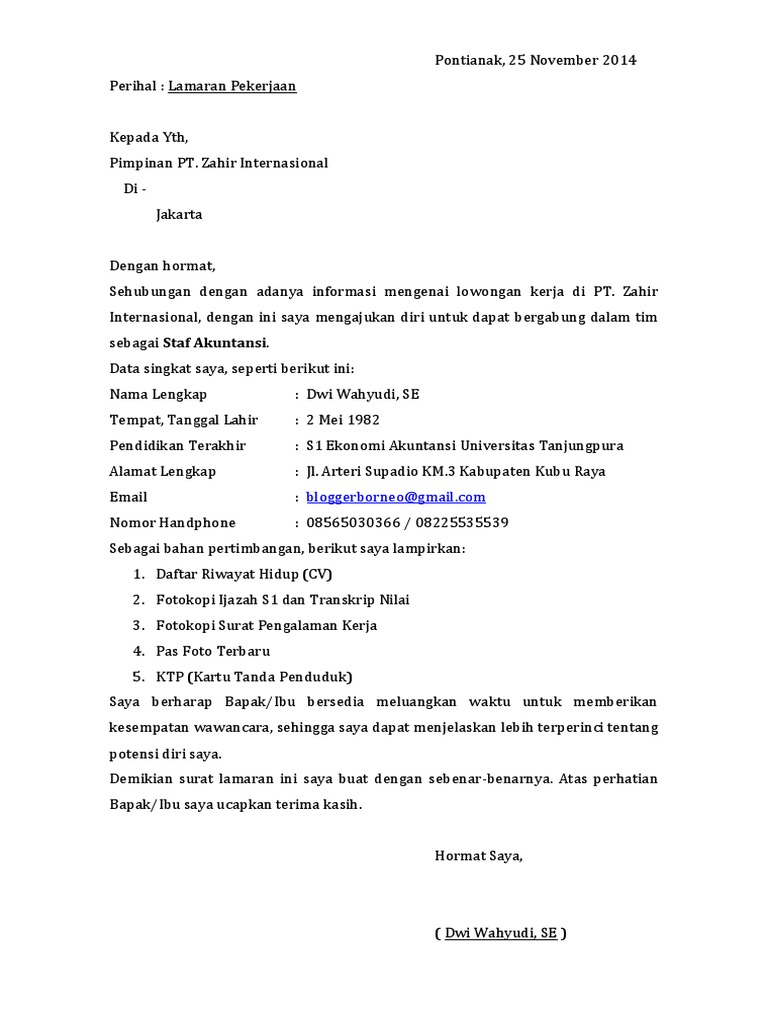 Contoh Surat Lamaran Kerja Tulis Tangan - ContohSurat Pro