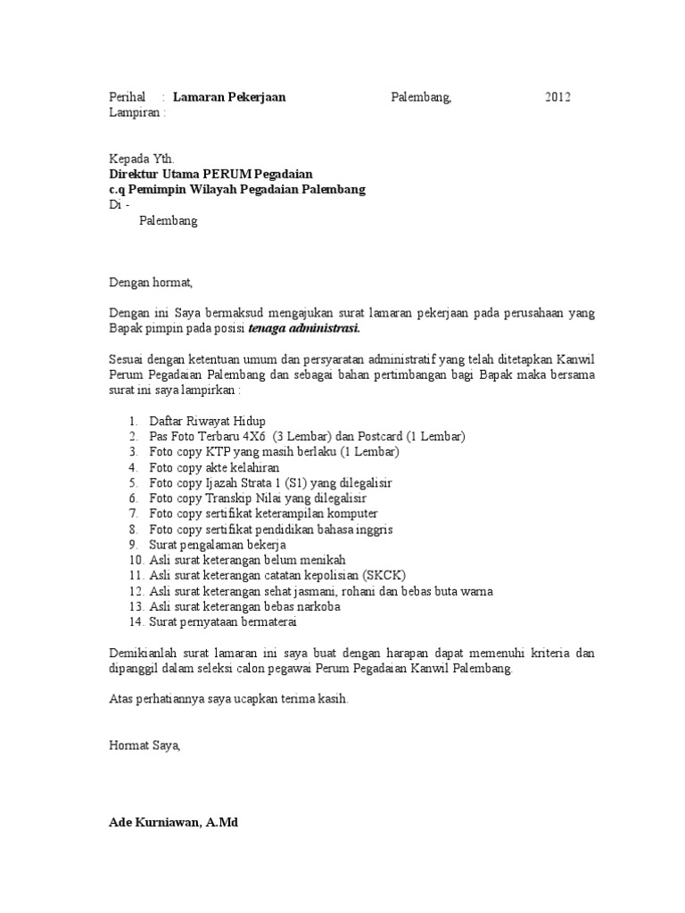 Contoh Surat Lamaran Kerja Untuk Pt Pegadaian – ID.Lif.co.id