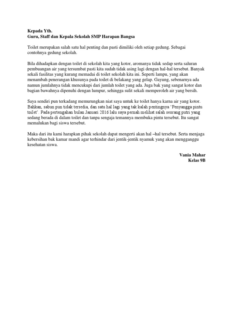 Contoh Surat Pembaca Tentang Wc Sekolah - Kumpulan Surat Penting