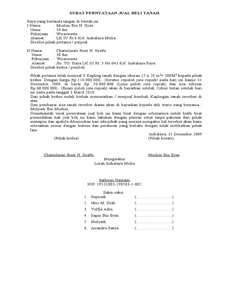 SURAT PERJANJIAN JUAL BELI TANAH - PDF Free Download