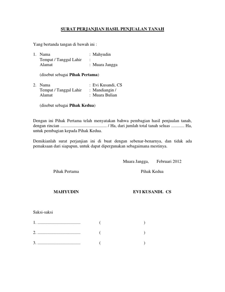 Contoh Surat Perjanjian Pembagian Komisi Jual Beli Tanah - Bagi …