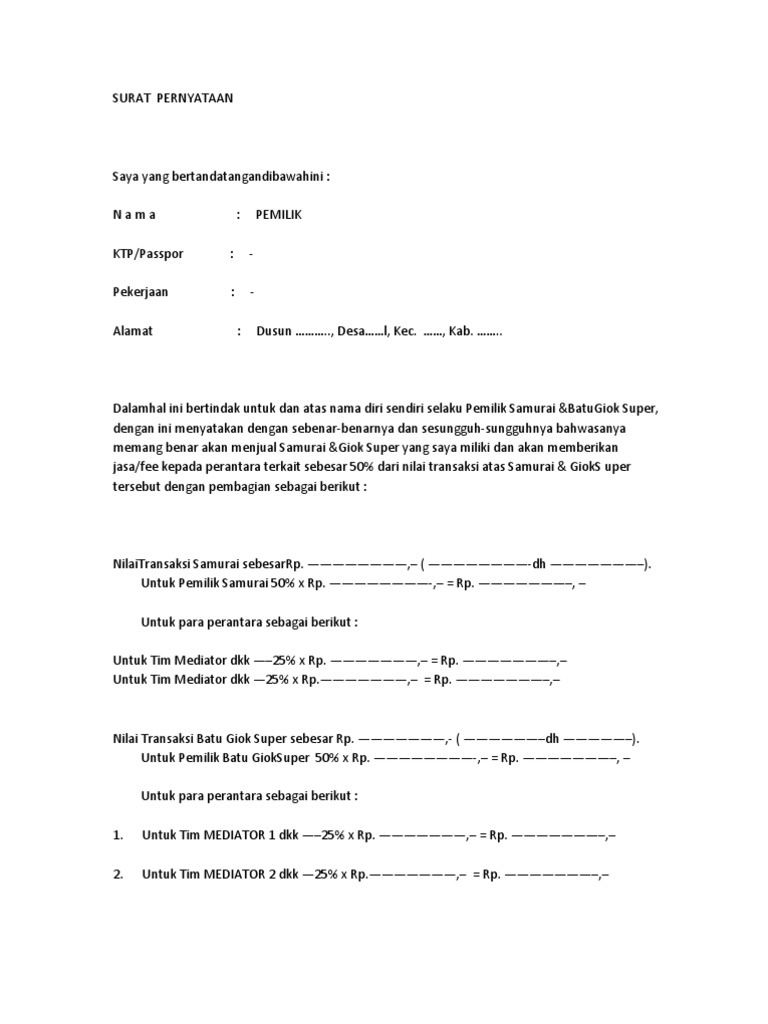Contoh Surat Pernyataan Fee Mediator - Kerkoso