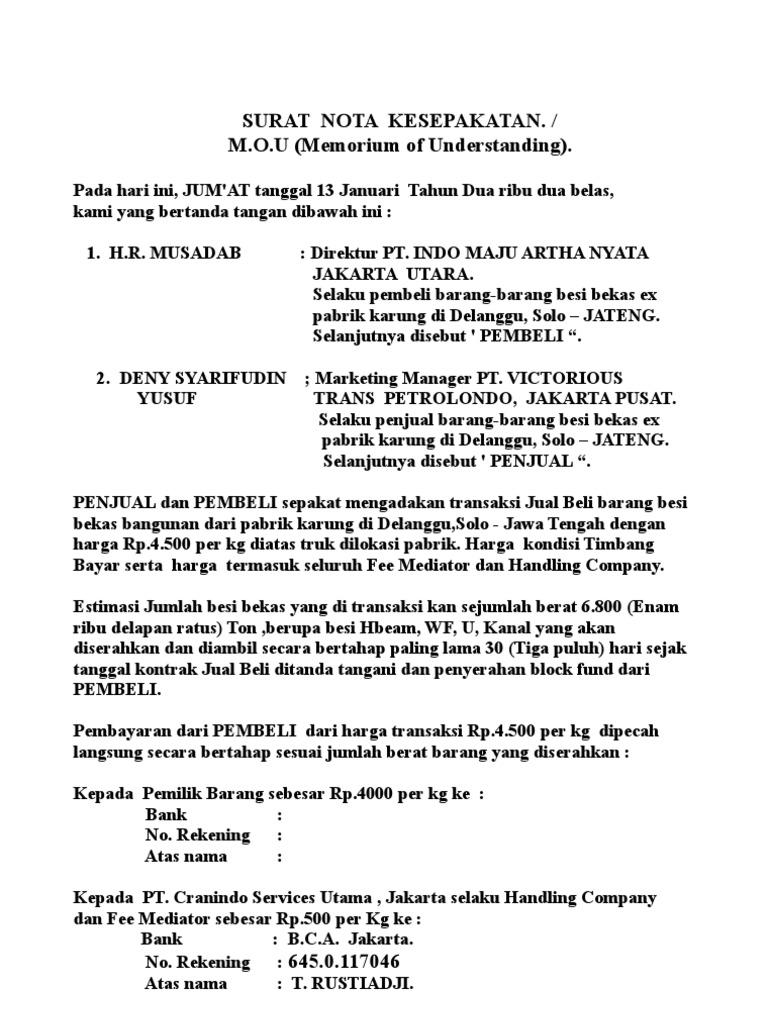 DOC) Contoh surat perjanjian komitmen fee | Tedjo Goenadi …