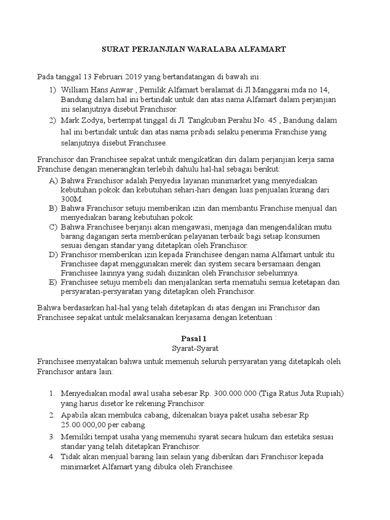 Contoh Surat Perjanjian Waralaba Indomaret - Download Kumpulan Gambar