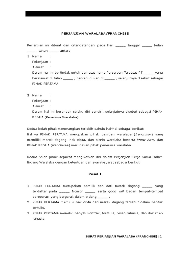 DOC) PERJANJIAN WARALABA (FRANCHISE).docx | Gita Sinaga - Academia.edu
