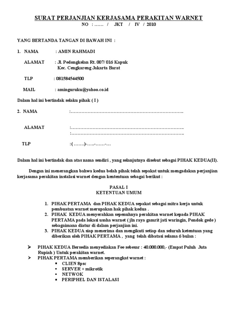 DOC) CONTOH SURAT PERJANJIAN | romi omie - Academia.edu
